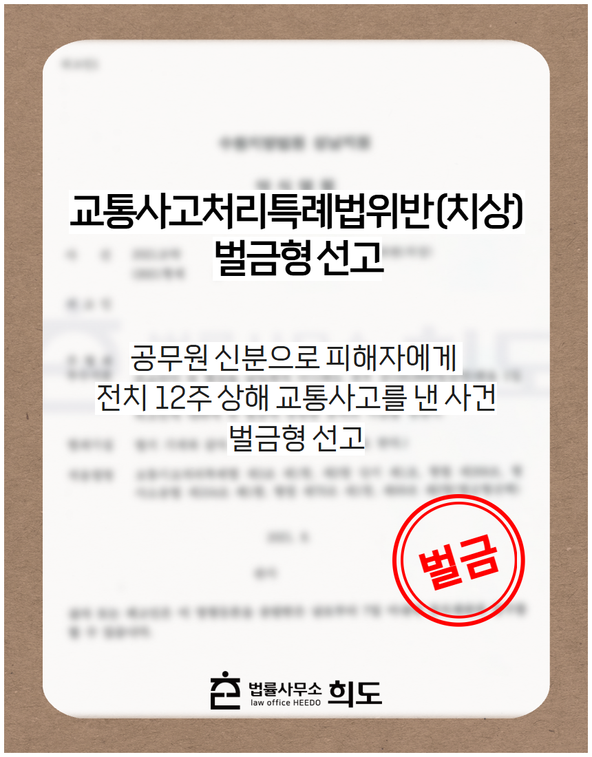 이에 변호인은 벌금형 선고를 이끌어내기 위해 형사 합의에 주력했습니다. 피해자와 원만히 합의를 끝냈고, 의뢰인이 공무원이기 때문에 집행유예 이상의 형이 선고되면 생계를 이어갈 수 없다는 점을 중점적으로 피력하였습니다.