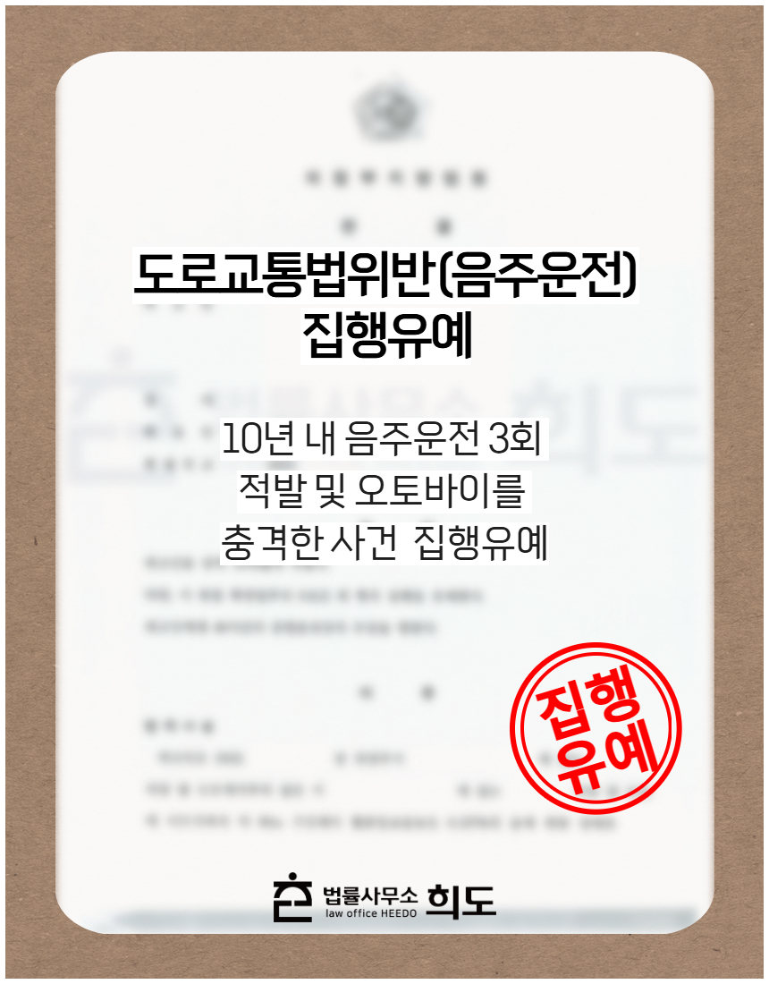 음주운전은 전과가 누적될수록 처벌이 가중되며, 단순 음주운전이 아니라 교통사고를 동반한 경우에는 초범이라도 높은 처벌을 받을 수 있습니다. 본 사건에서 의뢰인은 음주 상태로 오토바이와 충돌하는 사고를 일으켰으나, 이면도로에서 저속으로 발생한 경미한 사고였고 오토바이 운전자에게 인명 피해는 없어 진단서가 제출되지는 않았습니다. 다만 몇 회부터 구속이 단정되는 것은 아니더라도 단기간 내 2회 이상 음주운전의 경우 실형이 구형되는 사례가 많아 구속 위험이 존재합니다. 특히 의뢰인은 이번이 3회째 음주운전이었고 물적 교통사고까지 있어 법정 구속 가능성이 높은 상황이었습니다.