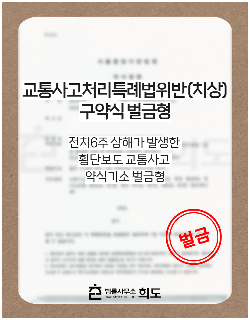 의뢰인은 이를 위반하여 보행자 보호의무 위반에 따른 교통사고처리특례법위반(치상)으로 수사가 개시되었습니다. 본 사건에서 저희 법률사무소 희도의 변호인은 사고 당시 의뢰인의 운전 경위와 과실의 정도, 피해 회복을 위한 노력 등 양형에 참작할 사정들을 적극 주장하였고, 그 결과 골절상이라는 중한 상해가 발생하였음에도 불구하고 비교적 경미한 벌금형으로 사건을 종결할 수 있었습니다.