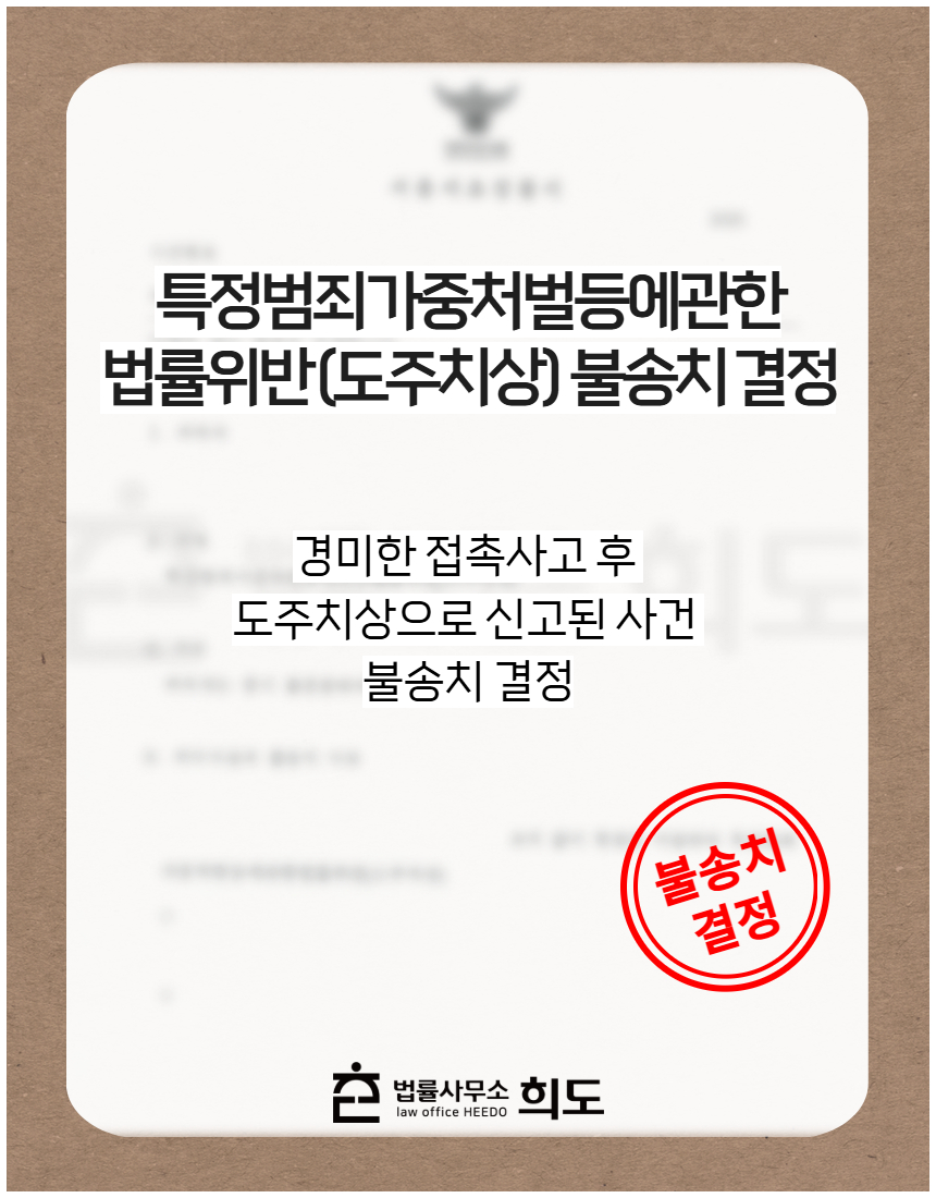 그 결과 수사기관은 의뢰인의 행위에 도주의 고의가 있었다고 보기 어렵다고 판단하였고, 피해 회복이 이루어진 점까지 종합적으로 고려하여 불송치 결정을 내리며 사건을 종결하였습니다.